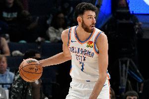 雷霆内线霍姆格伦上半场在进攻端出手不多,但是效率不错,防守端更是屡屡送出封盖。