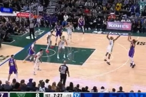 犯规无疑!东契奇弧顶造成库兹马三分犯规 雄鹿挑战失败
