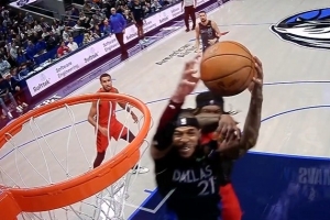 第12个助攻!詹姆斯空接不中但自己前场板 助攻拉拉维亚三分飙进